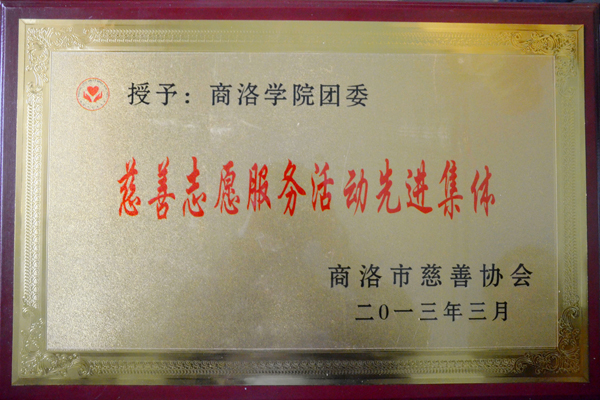 3月3日,陜西省慈善協(xié)會下發(fā)了《關于表彰2012年慈善志愿服務優(yōu)秀團隊、慈善志愿服務先進個人“一元關愛”先進單位的決定》,我院青年志愿者協(xié)會榮獲“慈善志愿服務優(yōu)秀團隊”稱號。3月12日,商洛市慈善協(xié)會下發(fā)了《關于表彰2012年度慈善明星企業(yè)和慈善工作先進集體的決定》,并授予我院團委“慈善志愿服務活動先進集體”稱號。