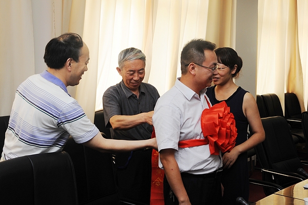 蔣正治同志滿含熱淚作了發(fā)言。他對學校領導以及各部門領導同事的關心、支持表示感謝。蔣正治表示,能夠作為援藏干部赴西藏工作感到十分光榮,自己赴藏工作期間,一定嚴格遵守組織紀律,服從組織安排,盡快適應阿里地區(qū)的工作、生活環(huán)境,克服生理和心理上的“高原反應”;在工作同時抓好學習,鞏固專業(yè)知識,加強學術研究,取得工作能力和業(yè)務上的進步;一定牢記我?!安┞剰娭?,正道直行”的校訓,不怕吃苦,勇于奉獻,全力以赴,不辜負省上和學校領導的期望,圓滿完成援藏任務,為陜西、為學校增光添彩。