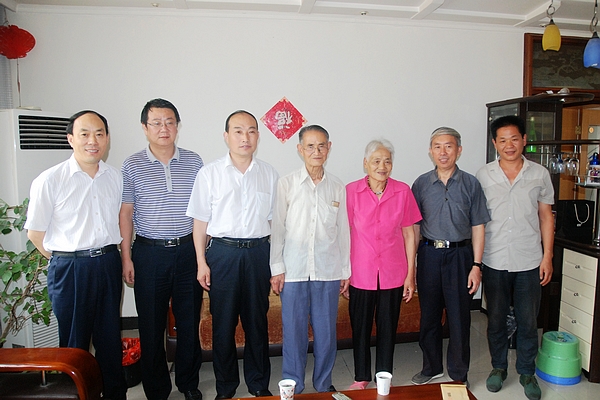 7月19日,商洛市副市長高健一行來到我校,看望了化學(xué)與化學(xué)工程系退休教師王明昌夫婦,為老人送去了鮮花和水果,并代表市委書記魏增軍、市長陳俊向老人表示誠摯的問候。校黨委副書記左曉民等一同看望。
