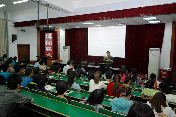 在報告會上,楊季芳從師資情況、科研項目、培訓(xùn)特色等方面向我校學(xué)生介紹了生環(huán)學(xué)院的基本情況和2014年工程碩士(生物工程領(lǐng)域)招生簡介。他說,生環(huán)學(xué)院的主要培養(yǎng)方向為水生生物物質(zhì)工程和海洋牧場、海洋生物資源與生物制品、食品化學(xué)與安全控制等三方面,具有良好的就業(yè)前景。希望我校學(xué)子明確考研目標(biāo),端正考研態(tài)度,積極報告浙江萬里學(xué)院生環(huán)學(xué)院。