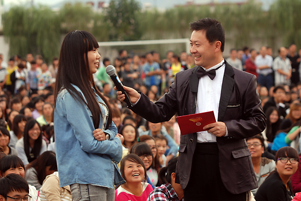 在節(jié)目中,主持人現(xiàn)場(chǎng)隨機(jī)采訪了兩位分別來自內(nèi)蒙草原和河北承德的2013級(jí)新生。他們向現(xiàn)場(chǎng)師生介紹了自己的家鄉(xiāng),表達(dá)了對(duì)母校的熱愛之情。一位大二學(xué)生也登臺(tái)向?qū)W弟學(xué)妹們介紹了商洛本地名勝與特產(chǎn)。