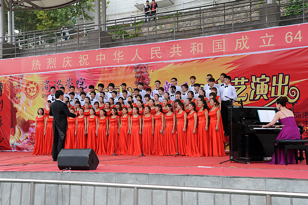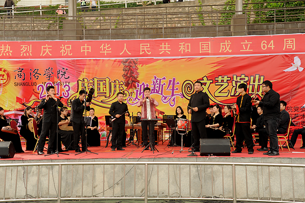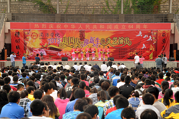 為慶祝新中國第64個(gè)生日,迎接2013級(jí)新生,9月26日下午,我校舉辦了“2013慶國慶·迎新生”大型文藝演出。西安音樂學(xué)院70余名師生應(yīng)邀友情出演,和我校師生、商洛劇團(tuán)青年歌手李淼輪番登臺(tái)獻(xiàn)藝,表演了民樂合奏、歌伴舞、獨(dú)唱、舞蹈、健身秧歌等19個(gè)節(jié)目。熱烈祥和的氣氛、清新高雅的藝術(shù)為校園帶來了節(jié)日的歡樂和文化的盛宴。