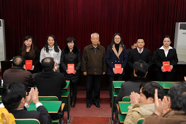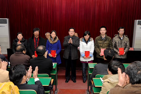 在熱烈的掌聲中,劉建林、王思懷、陳永莊、魏書堂分別為2013年度校級優(yōu)秀教案及優(yōu)秀電子課件獲獎?wù)?、?yōu)秀實習(xí)帶隊教師、教學(xué)技能競賽優(yōu)勝者、校級教學(xué)成果獎獲得者、校級本科教學(xué)工程精品課程和雙語教學(xué)示范課負責(zé)人、校級教學(xué)名師、省級科學(xué)成果二等獎獲得者頒獎;為省級本科教學(xué)工程項目授牌。副院長魏書堂宣讀了表彰決定。