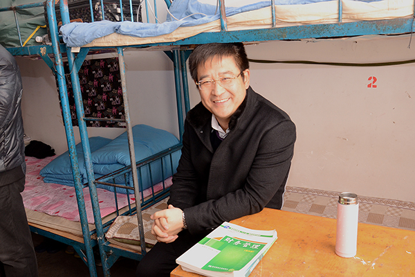 王建軍在曾經生活過的宿舍留念