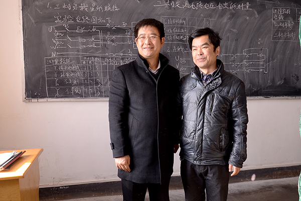 王建軍在曾經學習過的教室留念