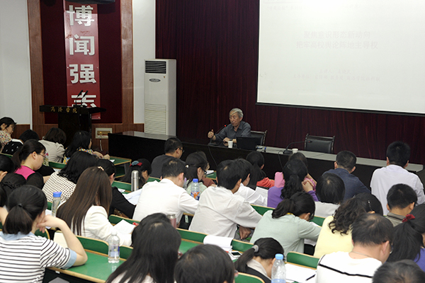 郭英勇在主持總結(jié)時(shí)說,全體教師要自覺堅(jiān)持馬克思主義在高校輿論中的主導(dǎo)地位,自覺培養(yǎng)踐行社會主義核心價(jià)值觀,把牢高校輿論宣傳陣地主導(dǎo)權(quán),引導(dǎo)青年確立正確的世界觀、人生觀、價(jià)值觀,在實(shí)現(xiàn)“中國夢”的實(shí)踐中實(shí)現(xiàn)自己的人生價(jià)值。