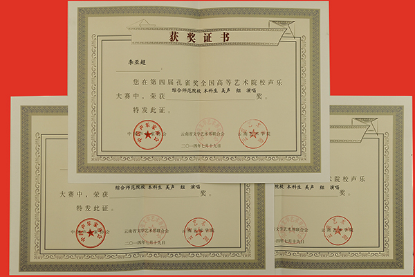 其中,潘勛獲得綜合師范院校教師美聲組優(yōu)秀獎(jiǎng);李亞超等三名學(xué)生獲得綜合師范院校本科生美聲組演唱獎(jiǎng)。