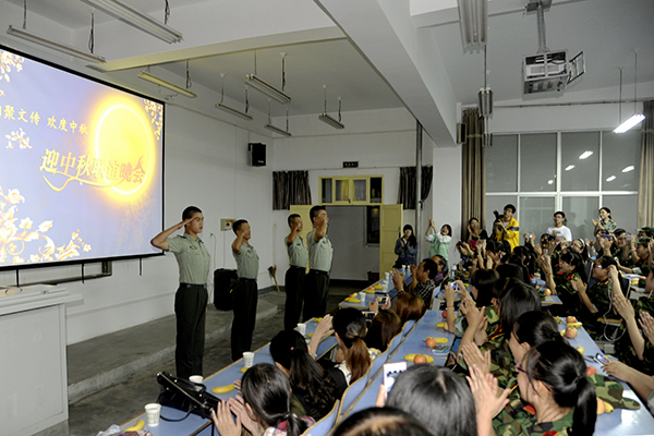 中秋團圓夜,商院共此時。一年一度的中秋佳節(jié)來臨,為了豐富2014級新生的軍訓(xùn)生活,9月8日晚,我校各學(xué)院紛紛舉辦新生中秋聯(lián)誼晚會。校黨委副書記左曉民,學(xué)生處處長石啟英走進晚會現(xiàn)場,并代表學(xué)校向全體師生和軍訓(xùn)教官致以節(jié)日的問候。