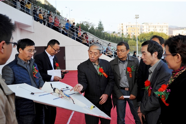 開幕式上,航模隊(duì)展演了由KT板和EPO泡沫材質(zhì)做成的六架模型飛機(jī),飛機(jī)模型在天空中盤旋轉(zhuǎn)圈、直沖云霄,師生們贊嘆不已。在大學(xué)生活動(dòng)中心,師生們興致勃勃地觀看了我校學(xué)生的科技創(chuàng)新作品。