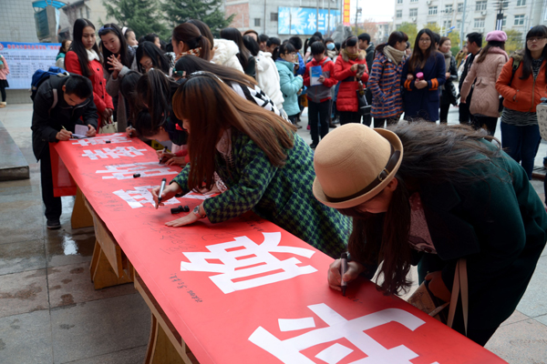 三五塊、十多塊、數(shù)百塊,都承載著師生們對王珍琪的鼓舞與祝福匯聚到募捐箱中。師生們還紛紛在活動橫幅上寫下了“樹立信心,堅強面對”“戰(zhàn)勝病魔,早日康復”等一句句祝福的話語。一時間,愛的暖流匯聚整個校園。