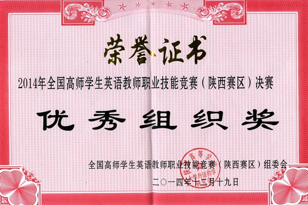 我校學(xué)子在2014年全國(guó)高師學(xué)生英語教師職業(yè)技能競(jìng)賽陜西賽區(qū)決賽中喜獲佳績(jī)