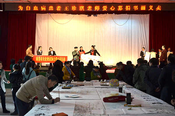 12月21日,由藝術(shù)學(xué)院和商洛市美術(shù)家協(xié)會聯(lián)合舉辦的“為白血病患者王珍琪老師愛心募捐書畫義賣”活動在我校大學(xué)生活動中心舉行,義賣的百余幅書畫作品均來自我校師生及社會各界愛心人士,商洛市著名書畫家還現(xiàn)場現(xiàn)場揮毫潑墨,進行了義賣捐贈。