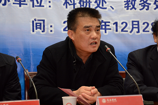 校黨委書記張景書在致辭中指出,近年來,我校科研工作發(fā)展較快,科研平臺建設(shè)取得突破,一批科研成果獲得各級政府獎(jiǎng)勵(lì),教師發(fā)表的學(xué)術(shù)論文被國際權(quán)威檢索機(jī)構(gòu)收錄百余篇,在科研服務(wù)地方工作中也取得了顯著成果。張景書說,人才培養(yǎng)、科學(xué)研究、社會服務(wù)和文化傳承創(chuàng)新是高校的四大職能和任務(wù)。科學(xué)研究是提高人才培養(yǎng)質(zhì)量的重要環(huán)節(jié),是社會服務(wù)、文化傳承創(chuàng)新的主要途徑,科研水平也是學(xué)校辦學(xué)實(shí)力的真正體現(xiàn)。只有高度重視科研工作,不斷提高科研水平,產(chǎn)出高質(zhì)量的學(xué)術(shù)成果,才能使學(xué)校在競爭中有一席之地。張景書指出,召開這次學(xué)術(shù)年會的目的就是為廣大教師搭建科研學(xué)術(shù)交流平臺,展示科研學(xué)術(shù)成果,濃厚科研學(xué)術(shù)氛圍,增強(qiáng)科研學(xué)術(shù)意識。希望大家珍惜這次學(xué)習(xí)交流的機(jī)會,認(rèn)真聆聽專家的報(bào)告,認(rèn)真聽取其他教師的發(fā)言,在學(xué)術(shù)探討和觀點(diǎn)碰撞中提升分析問題解決問題能力,提高全體教師的科研水平,支持我校教學(xué)質(zhì)量和服務(wù)地方不斷取得新突破。