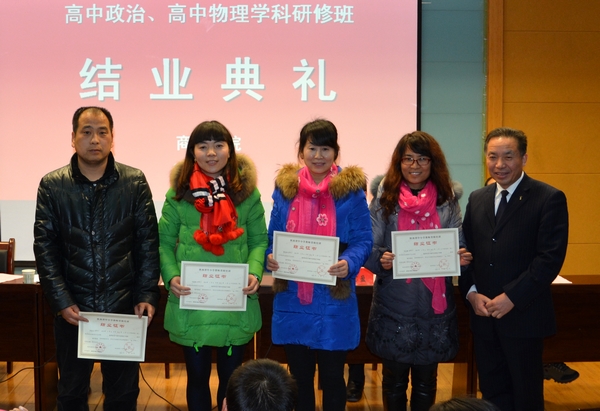 1月15日,我校承擔(dān)的陜西省高中教師省級(jí)脫產(chǎn)研修項(xiàng)目高中政治、高中物理研究班舉辦了結(jié)業(yè)典禮。來(lái)自全省各地近百所高中的近百名教師,在接受了為期10天的培訓(xùn)后,正式結(jié)業(yè)。校紀(jì)委書記、“國(guó)培計(jì)劃”和省級(jí)培訓(xùn)項(xiàng)目領(lǐng)導(dǎo)小組組長(zhǎng)、高中政治學(xué)科項(xiàng)目首席專家王思懷教授,黨委委員、副校長(zhǎng)、高中物理學(xué)科項(xiàng)目首席專家劉寶盈教授出席結(jié)業(yè)典禮并為學(xué)員頒發(fā)了結(jié)業(yè)證書。