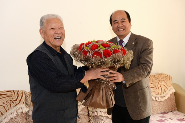 2月10日,在學(xué)校辦公室負(fù)責(zé)人的陪同下,校長(zhǎng)劉建林來(lái)到退休校領(lǐng)導(dǎo)楊含榮、劉文斌家中,在嚴(yán)寒的冬日為他們捎去學(xué)校黨政的關(guān)懷和溫暖的新春祝福。慰問(wèn)中,劉建林介紹了我校2014年所取得的成就以及迎接教育部本科教學(xué)工作合格評(píng)估準(zhǔn)備情況,對(duì)退休校領(lǐng)導(dǎo)們?yōu)閷W(xué)院建設(shè)與發(fā)展做出的貢獻(xiàn)表示感謝,希望各位退休校領(lǐng)導(dǎo)一如既往地對(duì)我校建設(shè)給予關(guān)注和指導(dǎo),并邀請(qǐng)他們?cè)谶m當(dāng)?shù)臅r(shí)候回學(xué)校參觀,感受近年來(lái)我校校容校貌的新變化。