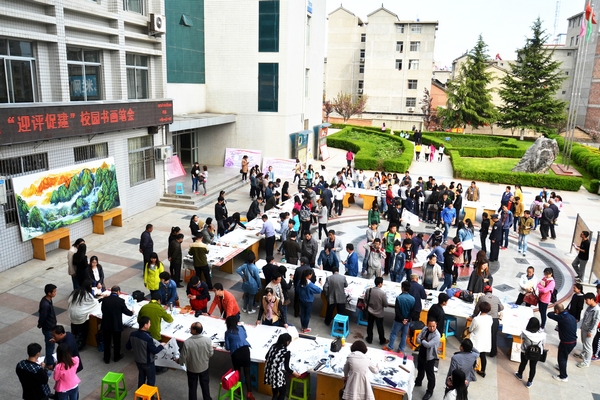 4月20日,我校與商洛市文聯(lián)聯(lián)合舉辦“迎評促建”藝術(shù)家書畫筆會進(jìn)校園活動。校黨委副書記彭虎軍出席活動并講話。商洛市文聯(lián)黨組書記王良,西安理工大學(xué)藝術(shù)學(xué)院院長、著名畫家王家民,校黨委宣傳部部長郭英勇,商洛市美協(xié)副主席胡惠民,商洛電大原校長唐社民,秦嶺畫派成員等校內(nèi)外藝術(shù)家參加活動?;顒佑伤囆g(shù)學(xué)院院長、秦嶺畫派創(chuàng)始人劉鳳林主持。
