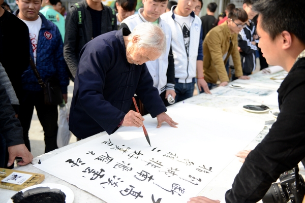 筆會上,商洛學(xué)院書法家協(xié)會主席李尚民,陜西毛體書法藝術(shù)研究院副院長劉全民,商山書畫院院長張東海,商洛市老年大學(xué)校長崔學(xué)民,陜西書畫院商洛分院副院長殷寶喜,商洛市文藝評論家協(xié)會主席李中合等老中青藝術(shù)家揮毫潑墨、題字作畫,成為校園里一道靚麗的風(fēng)景線。