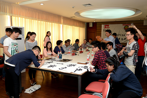 我校書畫協(xié)會(huì)還向南開科技大學(xué)兩岸文化交流研習(xí)團(tuán)師生贈(zèng)送了現(xiàn)場(chǎng)創(chuàng)作的“兩岸學(xué)子一家親”“富貴牡丹”等書畫作品,以作紀(jì)念。