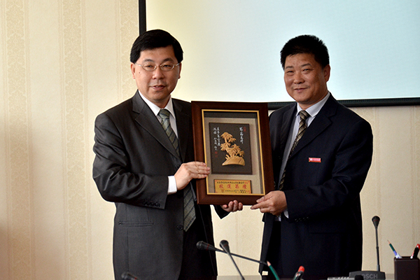 我校與臺(tái)灣南開科技大學(xué)互贈(zèng)了禮品并合影留念。