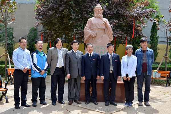 在紀(jì)委書記王思懷與藝術(shù)學(xué)院院長(zhǎng)劉鳳林等的陪同下,許聰鑫一行參觀了西門藝術(shù)長(zhǎng)廊并出席了倉頡像揭幕儀式。許聰鑫與王思懷一同為倉頡像揭幕。范新會(huì)在揭幕儀式上指出,商洛學(xué)院作為商洛地區(qū)唯一一所本科院校,肩負(fù)著傳承中華民族優(yōu)秀文化的歷史使命,兩校一同為倉頡像揭幕,充分體現(xiàn)了海峽兩岸炎黃子孫對(duì)中華文化的高度認(rèn)同和充分信任。我校將繼承倉頡造字的首創(chuàng)精神,加快發(fā)展步伐,為商洛地區(qū)的社會(huì)發(fā)展提供文化引領(lǐng),希望雙方緊密攜手,加強(qiáng)合作、共同發(fā)展,為社會(huì)進(jìn)步、文化傳承作出應(yīng)有的貢獻(xiàn)。許聰鑫指出,很高興能參加倉頡像的揭幕儀式,商洛是一個(gè)非常具有人文氣息的地方,倉頡像的塑立體現(xiàn)了商洛學(xué)院對(duì)中華文化的保存與敬仰,祝福商洛學(xué)院在商洛這片文化底蘊(yùn)深厚的熱土上取得更加長(zhǎng)足的發(fā)展。