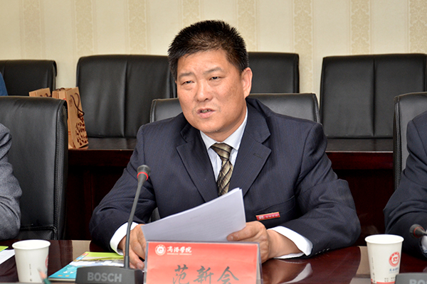 范新會(huì)代表學(xué)校在致辭中對(duì)許聰鑫一行表示熱烈歡迎,并介紹了學(xué)校建設(shè)發(fā)展的基本情況、下一步的發(fā)展思路。范新會(huì)指出,南開科技大學(xué)和我校同屬地方性應(yīng)用型本科院校,在辦學(xué)定位、服務(wù)地方經(jīng)濟(jì)社會(huì)發(fā)展方面有著諸多共同之處,合作基礎(chǔ)良好,真誠希望雙方不斷加強(qiáng)合作交流。