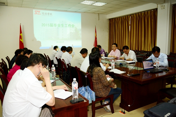 6月24日下午,我校召開2015屆畢業(yè)生工作會(huì),安排部暑2015屆畢業(yè)生后期各項(xiàng)工作。校黨委副書記彭虎軍要求,全校要高度重視,扎實(shí)、認(rèn)真、細(xì)致做好本屆畢業(yè)生后期工作,確保每一位畢業(yè)生都安全、順利離校。各二級(jí)學(xué)院黨總支及相關(guān)職能部門負(fù)責(zé)人參加了會(huì)議。