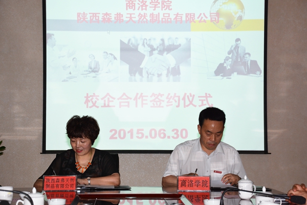 我校學(xué)校辦公室、發(fā)展規(guī)劃與交流合作處、科研處、教務(wù)處、學(xué)生處、校團(tuán)委、生物學(xué)院、經(jīng)管學(xué)院等部門(mén)負(fù)責(zé)人,商州區(qū)招商局、科技局、荊腰工業(yè)園區(qū)管委會(huì)以及森弗公司等相關(guān)單位負(fù)責(zé)人參加了協(xié)議簽字儀式。