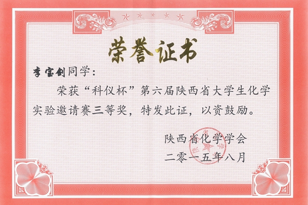 8月20至22日,由陜西省化學會主辦,寶雞文理學院承辦的“科儀杯”第六屆陜西省化學實驗邀請賽暨第五屆陜西省化學實驗中心聯(lián)席會議在寶雞文理學院舉行。我校代表隊憑借扎實的理論功底及熟練的實驗技能,獲得大賽一等獎1項,三等獎2項,實現(xiàn)了一等獎從無到有的歷史性突破。