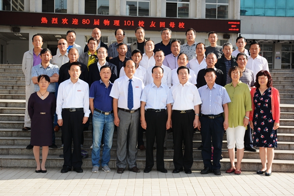桃李今回聚,香飄滿校園。9月12至13日,我校首屆物理101校友在闊別35年后重聚母校,攜手敘舊情,懇切話母校。校黨委書記張景書親切接見校友并合影留念。校長劉建林親切接見校友并出席校友座談會。校黨委副書記彭虎軍、副校長范新會陪同校友們參觀校園,并出席校友座談會。學校辦公室、宣傳部、發(fā)展規(guī)劃與合作交流處、教務處、學生處、電子信息與電氣工程學院等相關單位負責人參加活動。