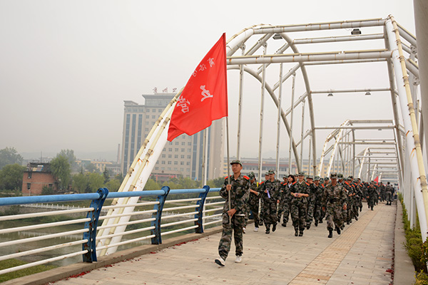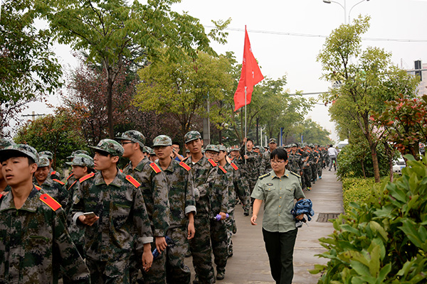 9月17日,我校2015級新生在軍訓(xùn)團和全體教官的帶領(lǐng)下,順利完成了作為軍訓(xùn)重要科目的行軍拉練活動。