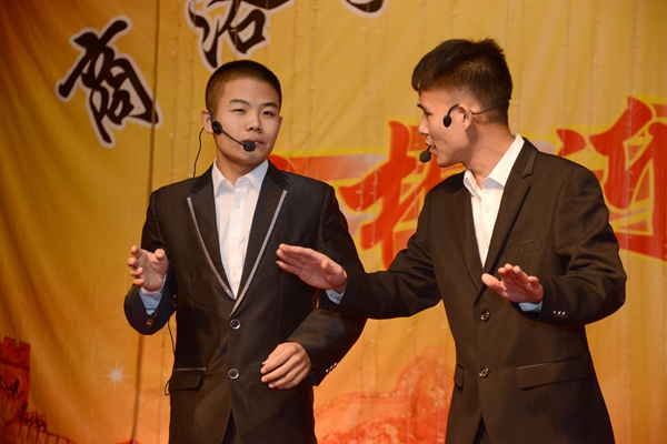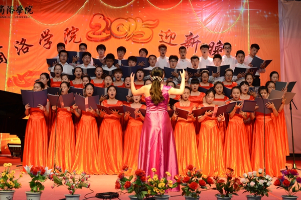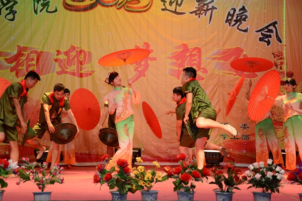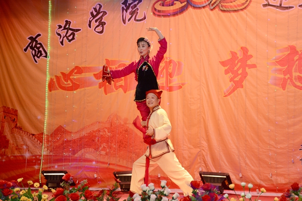 晚會以“心相迎 夢想飛”為主題。在大合唱《游擊隊隊歌》和校歌《正道直行做棟梁》的動人旋律唱中拉開帷幕。整場晚會形式多樣,現(xiàn)代與古典同臺,聲樂與器樂相和,浪漫與詼諧相伴。歌舞、相聲、朗誦、魔術、樂器聯(lián)奏等精彩的節(jié)目為觀眾呈現(xiàn)了豐盛的視聽盛宴。為紀念中國人民抗戰(zhàn)暨世界反法西斯戰(zhàn)爭勝利70周年,由藝術學院劉威老師帶來的《紅歌聯(lián)唱》將整場晚會渲染出了紅色的氣息,激昂的歌聲與清靈的鋼琴悠揚的笛聲相宜相合贏得了一陣陣贊美與掌聲。城鄉(xiāng)規(guī)劃與建筑工程學院學生帶來的相聲《地理圖》用毫不遜色于銀幕相聲的精彩表演給整個會場帶來了不息笑聲與不絕的掌聲。由商洛劇團的演員帶來的商洛花鼓戲《夫妻觀燈》表現(xiàn)了商洛本地戲曲的魅力,也預示了我校戲曲學院的蓬勃發(fā)展。最終,在一首《共筑中國夢》的師生歌伴舞中,整場晚會步入高潮,在陣陣掌聲中落下帷幕。