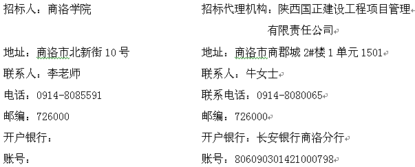 9.其他:申請人于2019年11月12日00時00分至2019年11月17日00時00分在陜西省公共資源交易平臺(www.sxggzyjy.cn)報名成功后,(每日上午08時30分至11時30分,下午2時30分至17時30分)至商洛學(xué)院基建處駐丹江校區(qū)辦公室(商洛市高新區(qū)商洛學(xué)院丹江校區(qū)辦公樓216)持網(wǎng)投報名回執(zhí)單、單位介紹信、法人授權(quán)委托書、企業(yè)法人身份證、被委托人身份證、營業(yè)執(zhí)照(三證合一)、資質(zhì)證書、安全生產(chǎn)許可證、項目經(jīng)理的身份證及項目經(jīng)理在本公司2018年度全年(1月-12月)社保、建造師證、安全考核合格證,上述資料需提供加蓋公章的清晰復(fù)印件三套,購買資格預(yù)審文件。