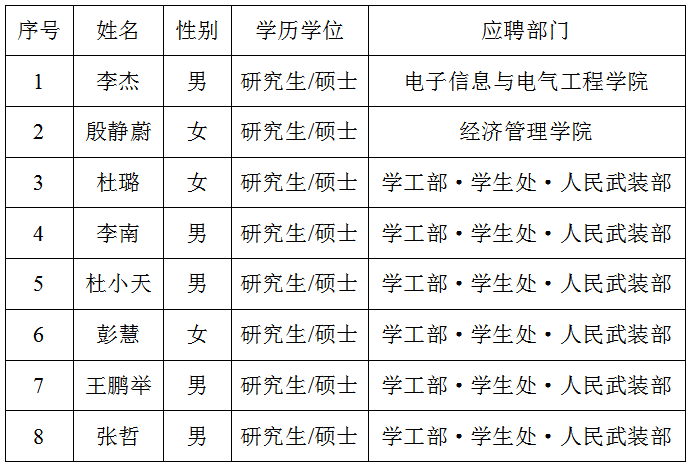 商洛學(xué)院2020年第九批擬招聘人員名單(8人)
