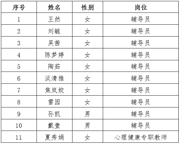 商洛學(xué)院2021年輔導(dǎo)員及心理健康專職教師擬錄用人員名單