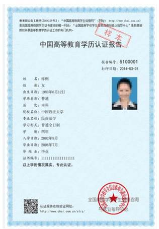 2.對于往屆考生,網(wǎng)報(bào)學(xué)歷校驗(yàn)通過的,只提供畢業(yè)證書照片;網(wǎng)報(bào)學(xué)歷校驗(yàn)未通過的還須提供“中國高等教育學(xué)生信息網(wǎng)”的《教育部學(xué)歷證書電子注冊備案表》或《中國高等教育學(xué)歷認(rèn)證報(bào)告》。示范圖片如下:
