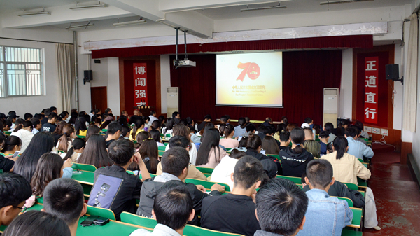 10月1日上午,舉世矚目的慶祝中華人民共和國成立70周年大會、閱兵式、群眾游行在北京天安門廣場隆重舉行。我校廣大師生通過網絡、電視、廣播等媒體收看收聽活動盛況,黨委副書記彭虎軍和師生代表在學校報告廳集中收看了直播。活動結束后,師生們難抑激動之情、自豪之感,紛紛熱議習近平總書記重要講話,爭相表達對祖國母親的深情祝福和奮斗新時代的堅定信心。