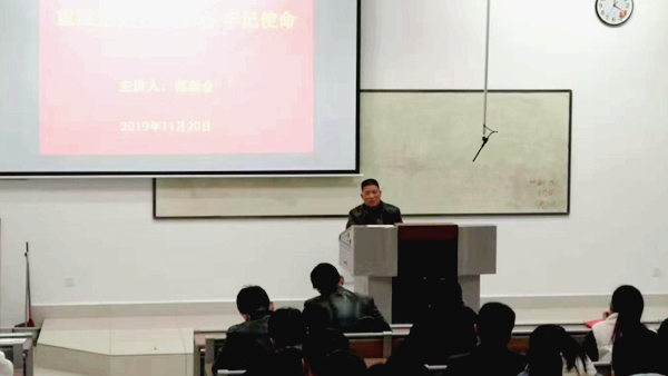 11月20日下午,校黨委副書記、校長范新會(huì)以《重溫黨史不忘初心牢記使命》為題為建工學(xué)院全體學(xué)生黨員講授專題黨課。