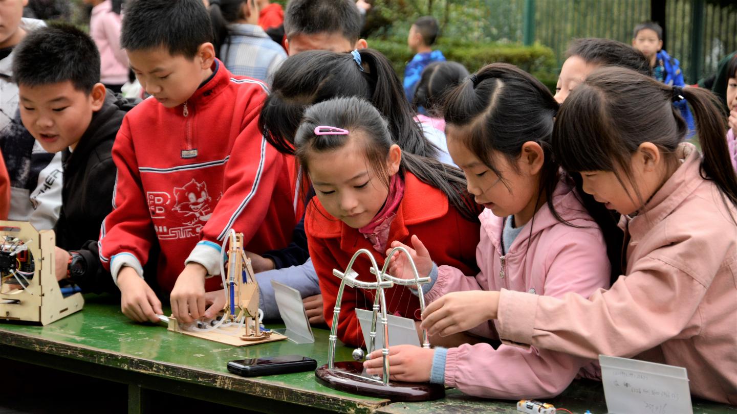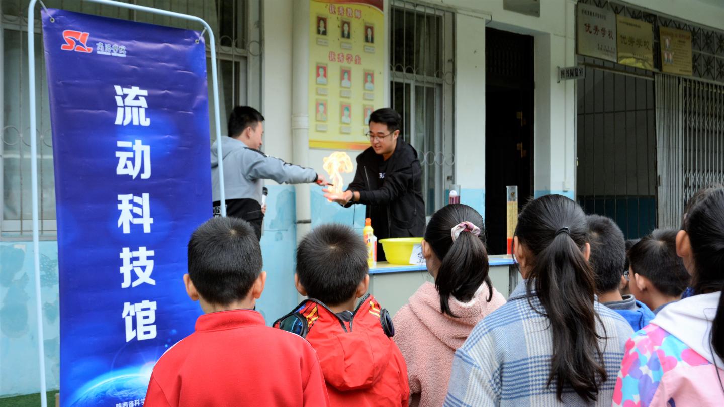 我?!班l(xiāng)村流動(dòng)科技館”的科普使者們把各式各樣新奇好玩的科技作品和航模飛行器帶到和坪村小學(xué)進(jìn)行展覽,以精彩的情景劇和現(xiàn)場(chǎng)講解,串聯(lián)展示了趣味密度實(shí)驗(yàn)(陜西省科學(xué)實(shí)驗(yàn)大賽二等獎(jiǎng)獲獎(jiǎng)作品)、自制汽水實(shí)驗(yàn)、美麗化學(xué)試驗(yàn)和廢物利用—音箱、昆蟲“琥珀”標(biāo)本制作等科普試驗(yàn),手把手教小朋友們遙控小坦克、小汽車,帶著他們一起放飛航模飛行器,讓他們?cè)诨?dòng)中領(lǐng)略科學(xué)的神奇魅力,引導(dǎo)他們張開理想的翅膀,在更加廣闊的天地勇敢追夢(mèng)。
