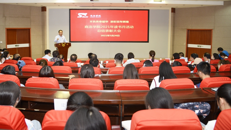 為慶祝中國(guó)共產(chǎn)黨成立100周年,強(qiáng)化黨史學(xué)習(xí)效果,提升校園文化建設(shè)水平,圖書(shū)館與教務(wù)處聯(lián)合開(kāi)展了“不負(fù)青春韶華,添彩百年輝煌”讀書(shū)月活動(dòng)?;顒?dòng)開(kāi)展以來(lái),全校師生踴躍參與,總?cè)藬?shù)達(dá)到1850人,收到了良好效果。5月26日,我校舉辦讀書(shū)月活動(dòng)總結(jié)表彰大會(huì),總結(jié)活動(dòng)成效,表彰在“讀書(shū)月”期間表現(xiàn)優(yōu)異的學(xué)生。校黨委書(shū)記龍治剛出席大會(huì)并講話,黨委副書(shū)記彭虎軍宣讀表彰決定,副校長(zhǎng)王新軍主持大會(huì)。學(xué)生處、團(tuán)委、教務(wù)處、圖書(shū)館負(fù)責(zé)人,各二級(jí)學(xué)院黨總支書(shū)記,圖書(shū)館全體工作人員和學(xué)生代表150余人參加大會(huì)。