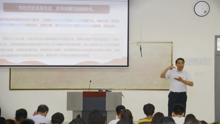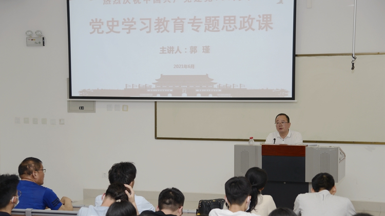 校領(lǐng)導(dǎo)彭虎軍、劉勇、王新軍、郭瑾在講授中,帶領(lǐng)同學(xué)們重溫了習(xí)近平總書記在黨史學(xué)習(xí)教育動(dòng)員大會(huì)上的重要講話精神,闡明“學(xué)史明理、學(xué)史增信、學(xué)史崇德、學(xué)史力行” 的目標(biāo)要求,從“深入學(xué)習(xí)領(lǐng)會(huì)習(xí)近平總書記關(guān)于黨史的重要論述、充分認(rèn)識(shí)開展黨史學(xué)習(xí)教育的重大意義;認(rèn)真研讀黨史基本著作、全面了解中國(guó)共產(chǎn)黨百年輝煌;深刻把握黨史學(xué)習(xí)教育的重點(diǎn);學(xué)懂弄通做實(shí)習(xí)近平新時(shí)代中國(guó)特色社會(huì)主義思想,增強(qiáng)‘四個(gè)意識(shí)’、堅(jiān)定‘四個(gè)自信’、做到‘兩個(gè)維護(hù)’”等四個(gè)方面作了深入淺出的講解。引導(dǎo)同學(xué)們把學(xué)黨史和悟思想貫通起來(lái),自覺以習(xí)近平新時(shí)代中國(guó)特色社會(huì)主義思想特別是習(xí)近平總書記關(guān)于黨史的重要論述為根本遵循,樹立正確黨史觀,準(zhǔn)確把握黨的歷史發(fā)展的主題主線、主流本質(zhì),理清黨史重大事件、重要會(huì)議、重要人物,深刻理解“中國(guó)共產(chǎn)黨為什么能、馬克思主義為什么行、中國(guó)特色社會(huì)主義為什么好”,樹立正確的世界觀、人生觀和價(jià)值觀,把實(shí)現(xiàn)個(gè)人價(jià)值、奮斗目標(biāo)、人生理想和國(guó)家的前途命運(yùn)結(jié)合起來(lái),堅(jiān)定理想信念,立大志、明大德、成大才、擔(dān)大任,努力成為堪當(dāng)民族復(fù)興重任的時(shí)代新人。