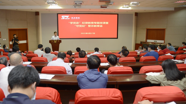為進一步貫徹落實習(xí)近平總書記在黨史學(xué)習(xí)教育動員大會上的重要講話精神,扎實落實中央紀委、省紀委五次全會安排部署,引導(dǎo)廣大黨員干部堅定理想信念、強化紀律意識,推動我校全面從嚴治黨向縱深發(fā)展,根據(jù)學(xué)校第四個“紀律教育學(xué)習(xí)宣傳月”活動安排,6月17日,我校召開了“學(xué)黨史” 紀律教育專題黨課暨“守黨紀”警示教育大會。校長范新會,黨委副書記彭虎軍、劉勇,副校長王新軍、郭瑾出席會議。全體副處級以上干部參加會議。會議由劉勇主持。