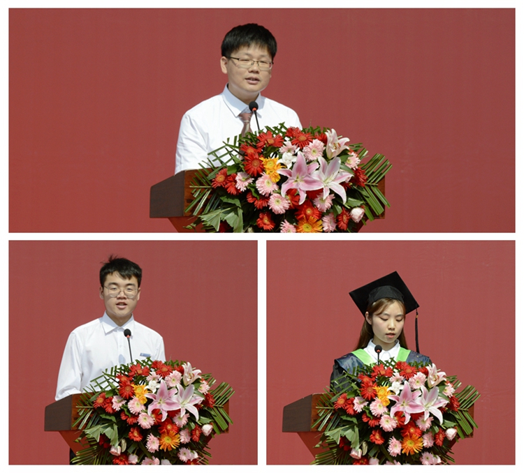 教師代表、建工學(xué)院秦進(jìn)博士,在校學(xué)生代表、人文學(xué)院陶亮分別作了發(fā)言,為畢業(yè)生們送去了美好祝福。畢業(yè)生代表劉昕怡代表全體畢業(yè)生感謝母校的培育之恩,表示將踐行“博聞強(qiáng)志正道直行”校訓(xùn),更加勤奮、更加拼搏,以優(yōu)異的成績(jī)?yōu)槟感?zhēng)光。