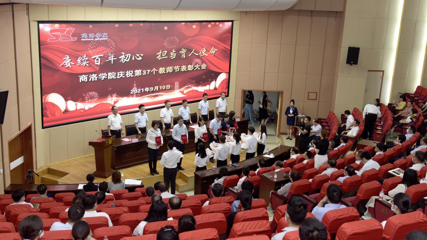 大會(huì)對(duì)我校2021年先進(jìn)集體、2020年度目標(biāo)責(zé)任考核先進(jìn)單位,榮獲陜西省教學(xué)名師、2020年度陜西省崗位學(xué)雷鋒標(biāo)兵、2021年7—8月敬業(yè)奉獻(xiàn)類陜西好人的教師,及我校2021年優(yōu)秀教師、2021年優(yōu)秀教育工作者、“我最喜愛的老師”、學(xué)生工作、科技工作及教學(xué)工作榮譽(yù)獲得者進(jìn)行了表彰。伴隨著輕松歡快的背景音樂和電子屏幕不斷滾動(dòng)著的表彰名單,受表彰的集體和個(gè)人代表邁著矯健的步伐先后走上主席臺(tái),從校領(lǐng)導(dǎo)手中接過獎(jiǎng)牌和榮譽(yù)證書。校領(lǐng)導(dǎo)與受表彰的教師們親切握手、合影留念。學(xué)生代表上臺(tái)為受表彰的教師們送上鮮花和誠摯的祝福,感謝老師們的教育之恩和培育之情。