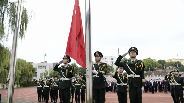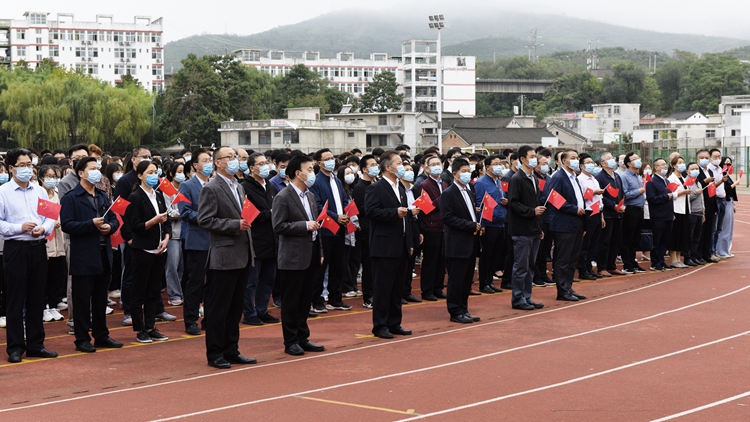 旗幟飄揚(yáng)引領(lǐng)方向,國歌響亮催人奮進(jìn)。為慶祝中華人民共和國成立72周年,9月30日上午,我校在北新街校區(qū)體育場隆重舉行“聽黨話跟黨走做新時(shí)代合格新青年”主題升國旗儀式。黨委書記張志昌、校長范新會(huì),黨委副書記彭虎軍、劉勇,副校長劉寶盈、王新軍,黨委委員李超、楊存典出席升國旗儀式。各職能部門負(fù)責(zé)人、各二級(jí)院(部)黨政主要負(fù)責(zé)人、經(jīng)管學(xué)院全體師生參加升國旗活動(dòng)。