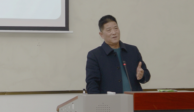 (左到右依次為黨委副書記彭虎軍、劉勇,副校長劉寶盈、王新軍宣講)