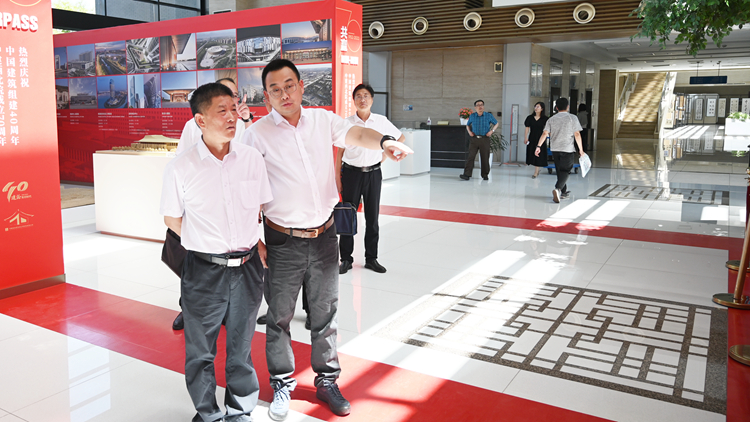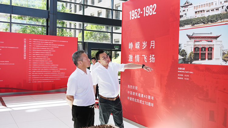 會前,張志昌、范新會、郭瑾一行在中國建筑西北設(shè)計研究院有限公司相關(guān)負(fù)責(zé)人的陪同下參觀了70周年展廳和綠色能源院。