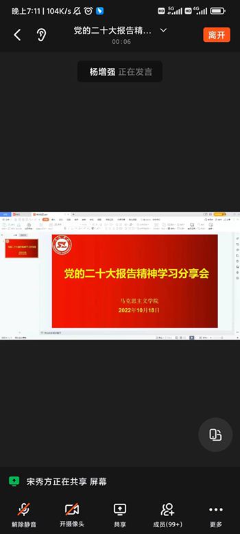 馬克思主義學(xué)院青年教師宋秀方、劉健、王曉霞、李娜娜在會上作了發(fā)言交流,表示將深入學(xué)習(xí)黨的二十大報告,從自身做起努力推進報告精神“三進”工作。