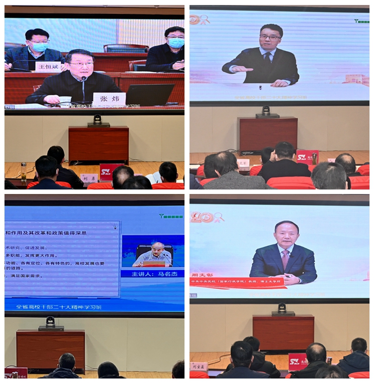 為全面落實(shí)習(xí)近平總書記關(guān)于深入學(xué)習(xí)宣傳貫徹黨的二十大精神的重要指示精神,2月20日至24日,陜西省委教育工委舉辦了全省高校領(lǐng)導(dǎo)干部暨委廳直屬機(jī)關(guān)學(xué)習(xí)貫徹黨的二十大精神專題學(xué)習(xí)班。省委教育工委書記、省教育廳廳長劉建林出席開班式并作動(dòng)員講話。我校全體校領(lǐng)導(dǎo)及處級(jí)干部參加培訓(xùn)。