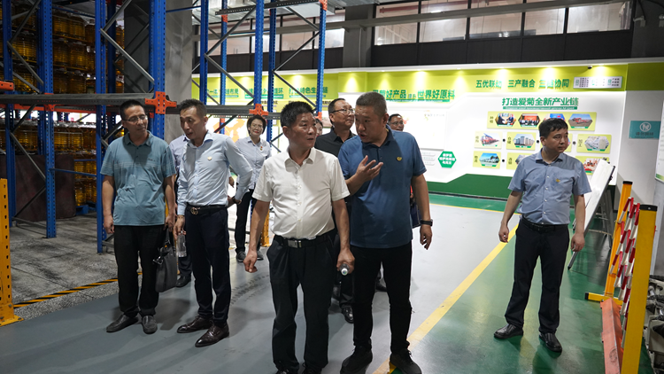 簽約前,范新會一行在劉東萌等人的陪同下參觀了愛菊集團(tuán)智能化倉庫、米面綜合體、油脂分裝車間、體驗中心和科普館。