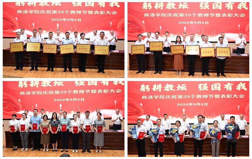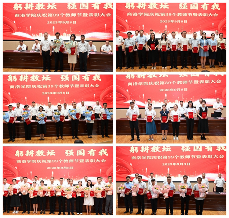在熱烈的掌聲中,大會對我校榮獲2023年陜西省教書育人楷模、第十三屆陜西普通本科高等學(xué)校教學(xué)名師、商洛學(xué)院首屆黃大年式教師團隊、2022年度全省教育系統(tǒng)先進個人、學(xué)校目標(biāo)責(zé)任考核優(yōu)秀單位、2023年度先進集體、優(yōu)秀教師、優(yōu)秀教育工作者、我最喜愛的老師以及在教學(xué)、科研和學(xué)生工作中取得突出業(yè)績的教師進行了表彰。